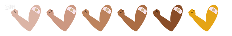 他们又在💪上面贴了一张创可贴,代表疫苗接种完成,同时将力量的象征同创可贴或绷带等保护、关怀的标志联系起来,直观且积极地向用户传达接种疫苗的益处。