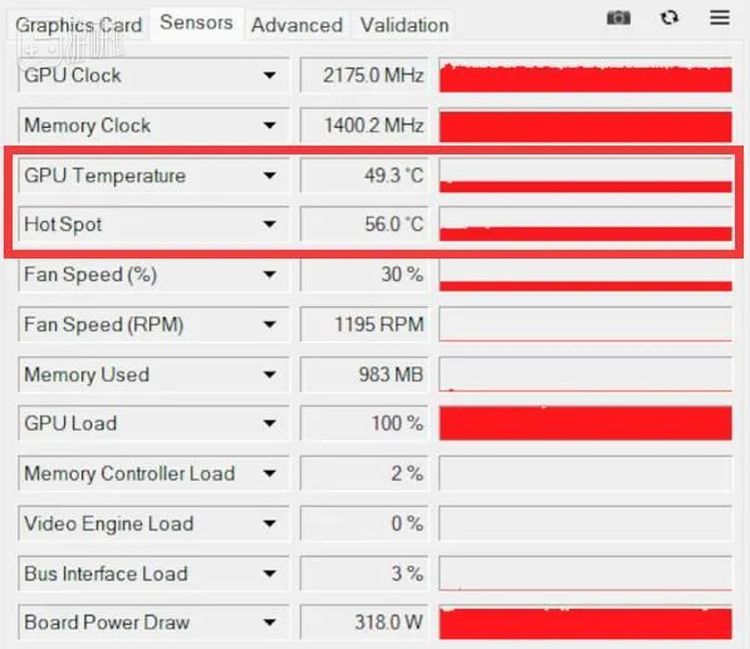 而作为一张40系的一体水冷显卡,iGame GeForce RTX 4080水神自然不会只有颜值拿得出手。在360mm水冷的帮助下,这张显卡面对FurMark的烤机测试,GPU的平均温度全程维持在46到49度左右,最热点只达到了56度。
