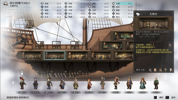养成舰队,不光需要启动资金,更需要足够的大船和NPC海员。能否在前期招募尽可能多的海员,直接影响了四位主角的开局难度。其中属阿拉伯主角最坐牢,主线剧情战斗多发,在开局很长一段时间内却只有一个副手可用,甲板界面轮班倒。僚舰无人担任舰长,前面提到的连携炮击系统也就像个笑话。