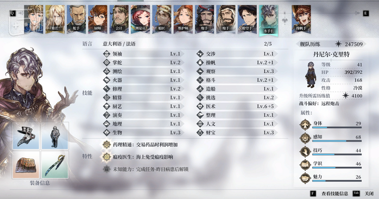每位海员拥有五维属性、三种独有特性、数十种作用和水平各异的技能,还能学习最多五种语言,这些设计使得整个技能系统看起来琐碎而臃肿。