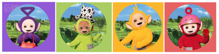 也许你已经不记得天线宝宝们的名字叫什么了,但是你一定能清晰地回忆起他们的颜色:没错,分别是 蓝紫色 , 绿色 , 明黄色 和 大红色 。