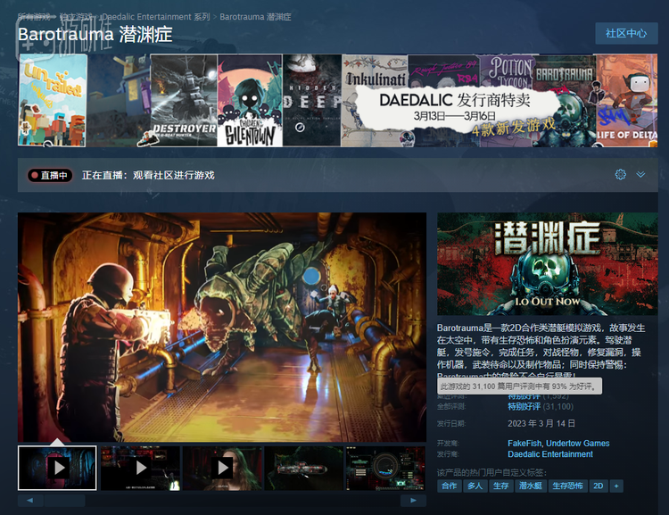 不过,正式版上线后,《潜渊症》在Steam的好评率其实有所下降。