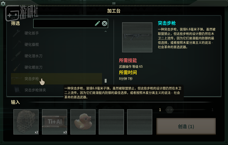 一些稀有的材料难以买到,须在某些打捞沉船的任务,或者搜查不知是哪个外星种族建造的设施遗迹时才找得到。用这些材料打造的高级装备,还需要不同职业升级技能并点出对应天赋,解锁配方后自行打造。