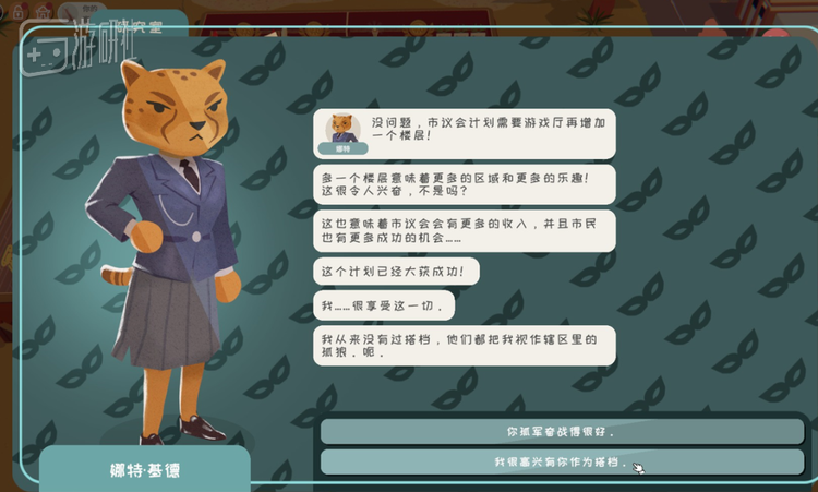 而“动物演员”在其中占据了重要的戏份。就像前面说到的黑(帮)熊一样,每位具备VIP身份的小动物都有各自的背景故事和独特剧情,像其中一个关卡的猎豹女警长,一方面要保持自己威严的警察身份,但另一方面又想城市获得更多的收入(所以要建设赌场),进而和主角开始了“欲拒还迎”的战略合作。