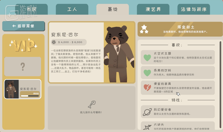 大多数时间,只要装潢好自己心仪的赌场,做好初期规划,就可以坐等卡通萌宠们跑来跑去(以及输钱破防),慢慢达成关卡目标。