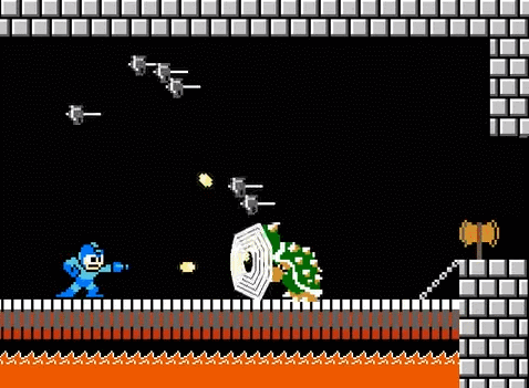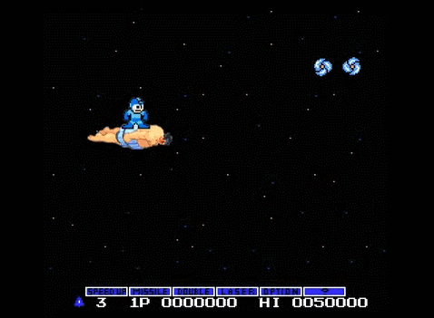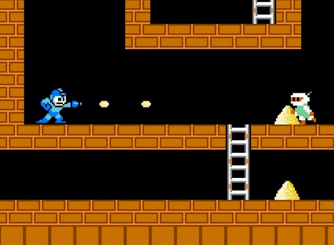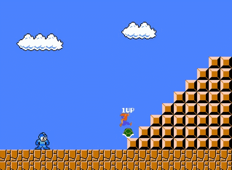 脑洞大,梗多,是他作品的最大特点。平均每几秒钟就会卖一个梗,信息量很大。下面是几张作品节选制作的gif图,来看看洛克人都在哪些游戏中被各种玩耍吧。