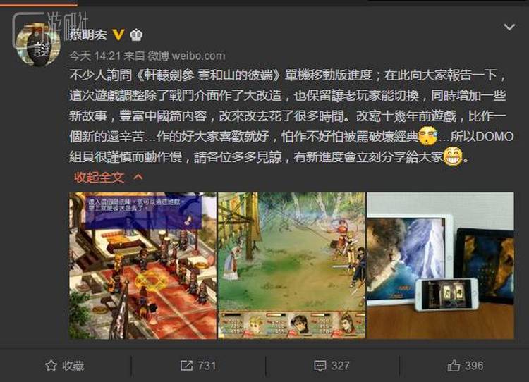 尾声今天下午,“轩辕剑之父”蔡明宏发布了一条新微博,一句增加一些新故事,丰富中国篇内容炸出了许多潜水多年的玩家,这次重制将是一次对玩家记忆中遗憾的补完。