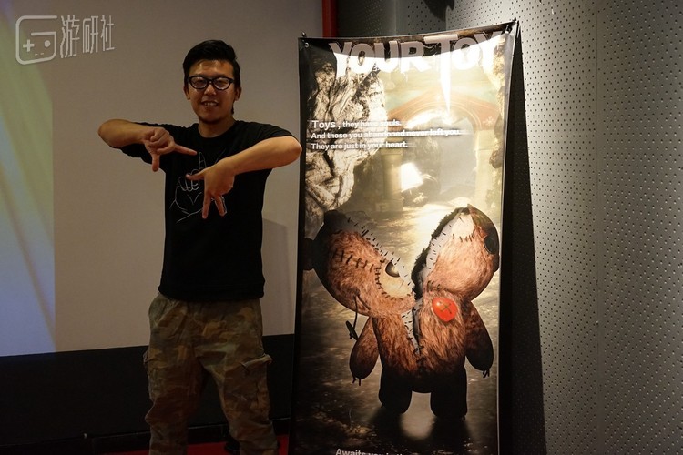 男人看起来三十岁出头,戴着黑框眼镜,经过精心修剪过的小胡子增添了一丝文艺气息。他就是姚姚丸,那个曾经在日本 SQUARE ENIX 第一开发部工作了8年、参与过《最终幻想13》等作品制作的游戏人,在微博的名字是“在日本做游戏的日子”。这款我正在试玩的游戏,是他们刚刚做出来的恐怖解谜游戏——《你的玩具》。