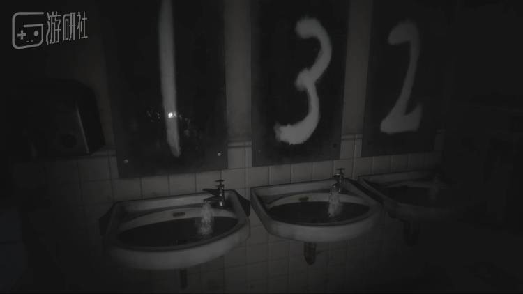 放下手机,我开始观察这个隔间:肮脏的墙壁和瓷砖反射着微弱的光线,天花板吊着一只忽明忽暗的灯泡,脚下是污渍满满并且漏水的马桶,已锁的门上画着四条不详的黑色痕迹(我坚信这里原本是血红色)。窗外不时传来了稀稀疏疏的雷雨声,与吱呀作响的木门交相呼应。不知道是这个地下室的音响器材优秀,还是游戏内的音效过度逼真——在我转换视角的时候明显感受到声音的来源发生了变化,与令人不安的画面结合在一起,更让人脊背发凉。