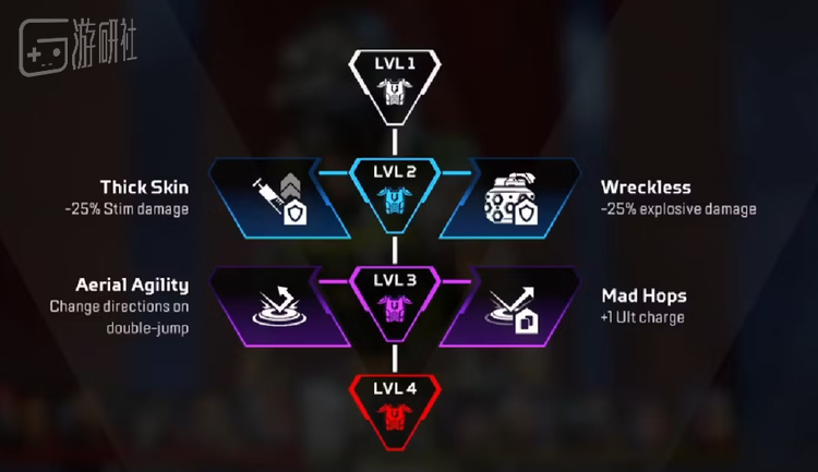简单来说,单局游戏中,玩家操作的英雄出生时是1级,可以通过战斗和探索获取EVO经验值来升级,最多可以升到4级。在2级和3级的时候,玩家会获得两次进化自己技能的机会,而且每次进化都有两个方向的天赋可以选择。