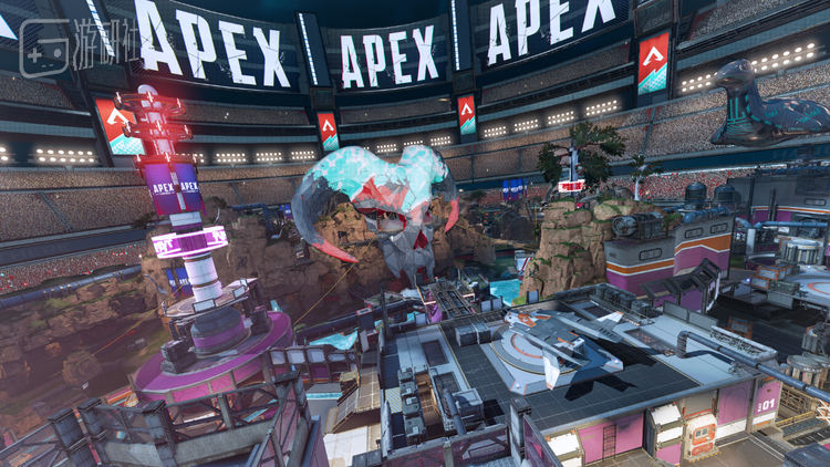 两个重大改动之外,S20还带来了一张叫做雷鸣擂台的新地图。这张地图适用于节奏更快的混合模式,增加了会和玩家互动的看台观众。如果玩家打出高光表现,看台的观众就会欢呼呐喊。混合模式本来一落地就在激情互射,配合一浪高过一浪的观众呐喊,确实挺有点APEX最初设定中“竞技场”的那种味道。
