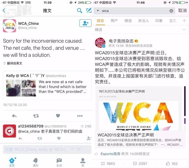 2015年WCA推特对外道歉,国内声称报警