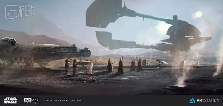 除去这些速写,其他业余时间里,他偶尔还会参加一些游戏和电影官方举行的设计竞赛,顺带展示自己驾驭不同画风的能力。比如参加给“星球大战“系列做特效的工业光魔的艺术部门举办的设定竞赛,这里走的是电影工业喜欢的写实风: