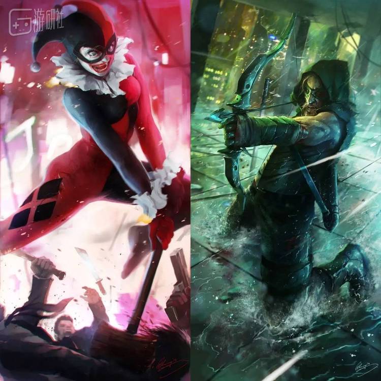 DC漫画英雄里的小丑女哈利奎恩和绿箭侠: