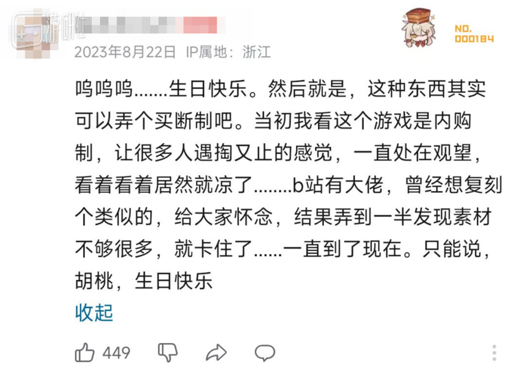 游戏2023年2月停服之后,似乎也没什么人再提起游戏中那位名为“七濑胡桃”的少女,IP对应的自媒体内容也早已停更。