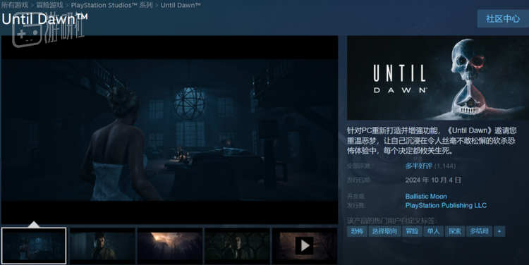 这个月初的时候,曾由PS独占的知名恐怖游戏《直到黎明》推出了重制版,并登上了Steam。