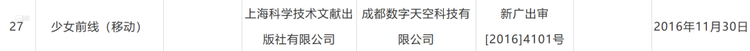 2016年11月,《少女前线》正式获批,申报信息显示其由成都数字天空科技有限公司负责运营。
