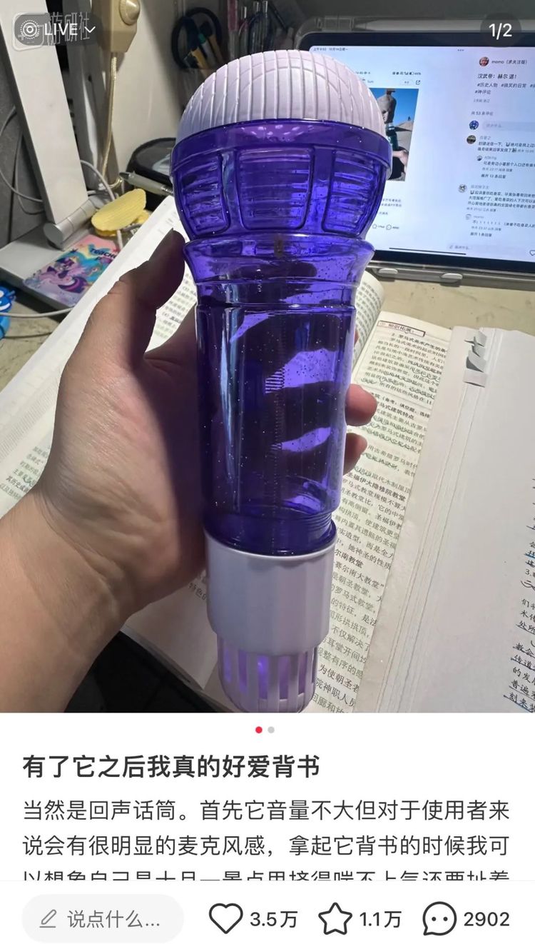 像是考研圈流行前的上一个奇妙道具,是用玩具回音麦克风背书。