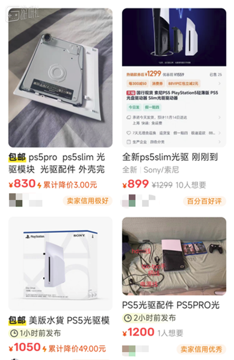 反倒是PS5 Pro的外置光驱,由于备货量太少被黄牛们一扫而空,原价80美元(约合人民币580元)的配件在国内的二手市场上被卖出了800元的高价,甚至仗着备货少敢卖到千元以上的黄牛也不在少数,颇有当年PS5溢价一倍的风范。