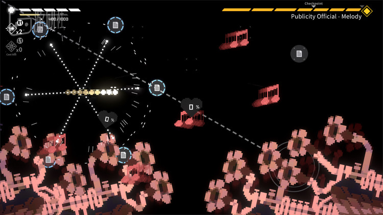 ●「贪食蛇」模式: 在战场上快速移动,蒐集随机生成的 「数据」(Data)。玩家的「身体」会随着蒐集到的资料而增长,且必须避免碰触自己的身躯或 BOSS 的弹幕。