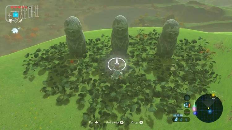 一个Korok种子谜题,需要在三个盆里都摆上苹果