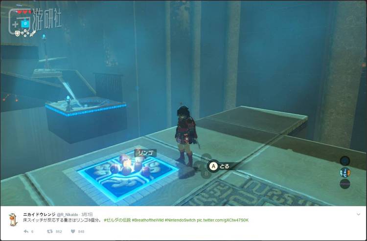 在一般的解谜环节中,各种物体的重量只有两个值:够重,和不够重。但在《荒野之息》中,几乎所有的物体都有明确的重量数值,一个金属宝箱可以按下的开关,用几个苹果也可以,解决问题的思路回到了基本的物理层。如果没有这套物理系统,《荒野之息》在解谜上就不会和系列之前的作品拉开差距,如果没有高自由度的谜题,单凭这套物理系统也无法给游戏的体验带来质变。