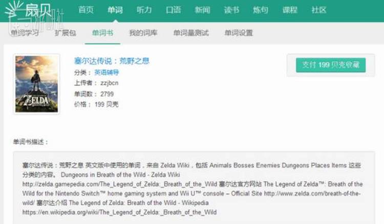 这是一个提升外语水平的好机会!于是一些国内的英语学习网站专门建立了《塞尔达传说:荒野之息》单词本,供大家学习。