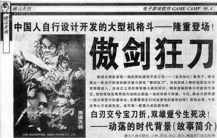 在这个游戏里,你可以看到很多知名格斗游戏的影子。当时行业正处于2D格斗游戏最后的辉煌,从剧情、人物、招式等方面看,《傲剑狂刀》都可以算作华人开发的格斗游戏巅峰之作,国内游戏杂志《电子游戏软件》也专门用好几页的篇幅专门介绍了这款游戏。