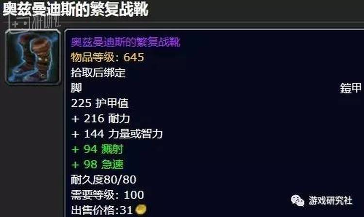 在《魔兽世界》中,有一双靴子叫奥兹曼迪斯的繁复战靴: