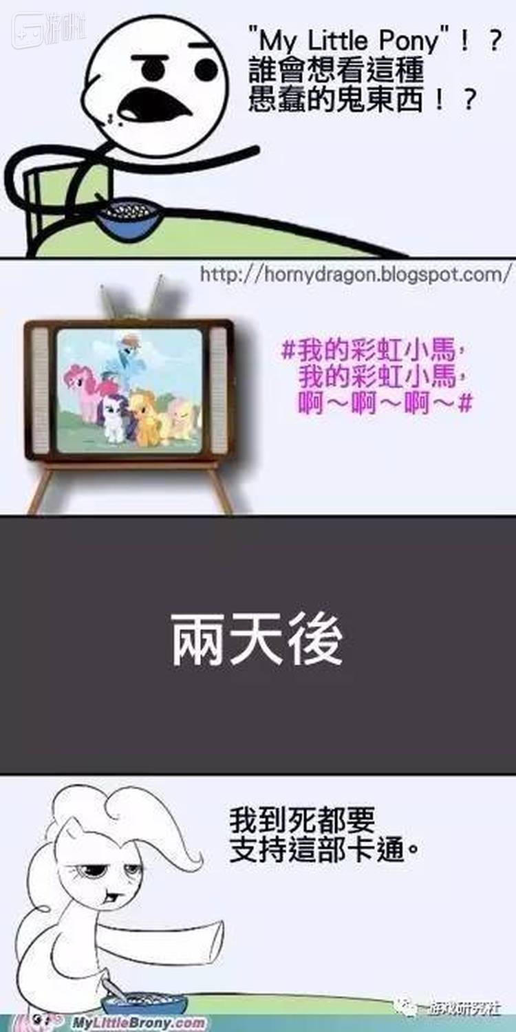 《彩虹小马》(My Little Pony,另译小马宝莉)由著名玩具厂商孩之宝在上世纪80年代制作,本来是一部给小女孩看的儿童动画。但系列第四作《彩虹小马:友谊就是魔法》放映后,开始得到了美国著名匿名论坛4Chan用户的关注,逐渐发展为一种疯狂传播的亚文化。对《彩虹小马》过分推崇的粉丝,被冠以“爱马仕”的称号。