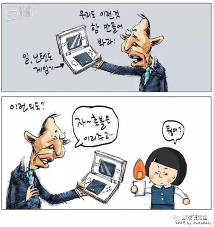 当年NDS掌机在韩国市场卖的火热,李明博一边惊叹于任天堂的天才,一边痛心如此成功的产品竟然是日本人造的。在一次内阁会议里,他向内阁官员们大声发问:为什么我们不做个像NDS一样的玩意儿出来?