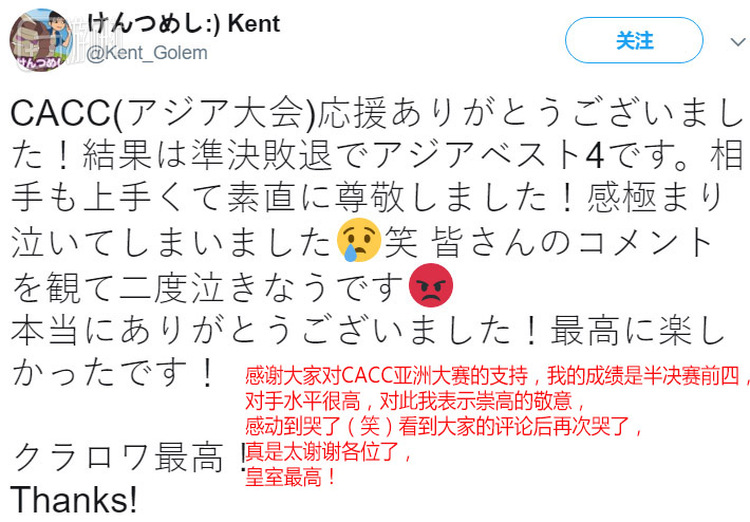 晋级四强的还有一位日本选手けんつめし,这位日本选手曾是日本公开赛的冠军,战力高达6144分。他曾在小组赛和八强赛中两次战胜中国选手,包括此次亚洲杯的冠军Aaron。