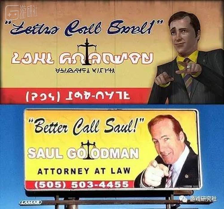 有时候也会照着流行电视节目借鉴一下,好比下面这个广告,因为是按照热门剧集《绝命律师》里的样子抄的,所以看过剧的人一眼就知道这是律师的广告牌。