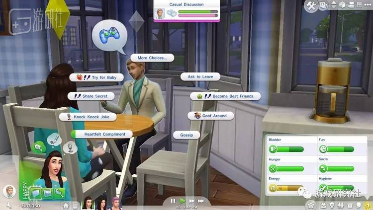 胡乱哼哼几句似乎也不行,之前他制作的《模拟直升机》(Sim Copter)里,城市里的居民就会蹦几句叽里呱啦的语言,但那游戏的主角是直升机,人类说什么话不是重点。《模拟人生》里要模拟的是人类和社交,全靠胡说八道好像显得不够严谨。