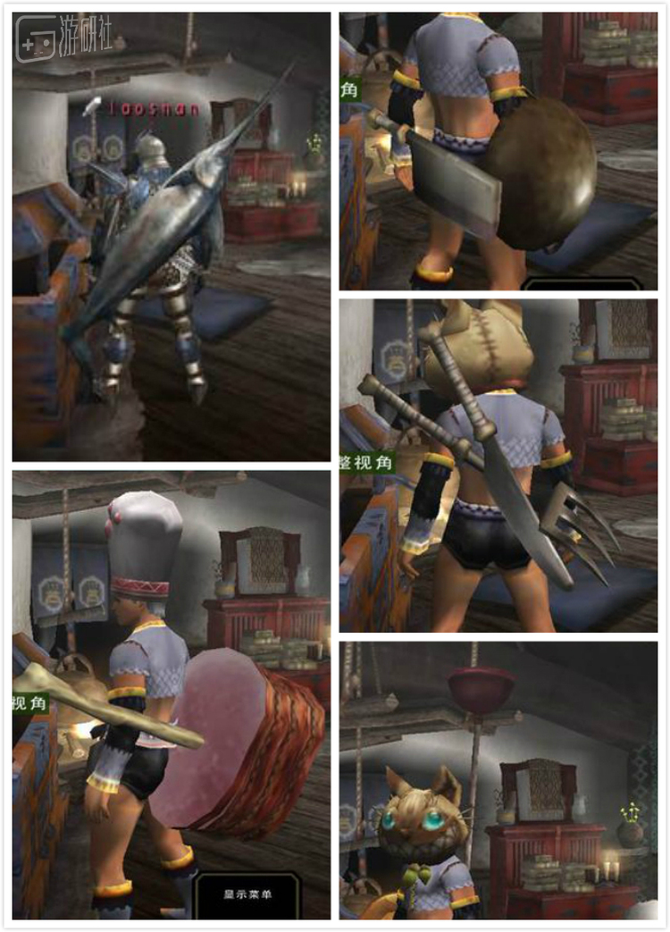 除了玩家自己设计的之外,游戏本身里也有一些非常奇葩的多功能武器,玩过的人一定非常熟悉:(图片来自大家非常熟悉的MHP2G):