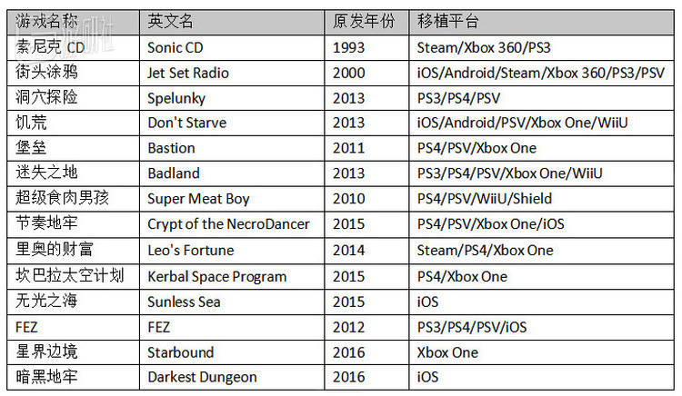 下面这个表是BlitWorks移植的部分知名游戏,其中绝大部分都是独立游戏: