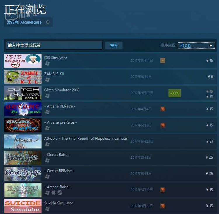 除了开发者,发行商ArcaneRaise也算是业界的一股清流,他发行过的游戏,除了《ISIS模拟器》擦了政治正确的边,评价混了一个“褒贬不一”之外,其他的所有游戏都是“多半差评”。