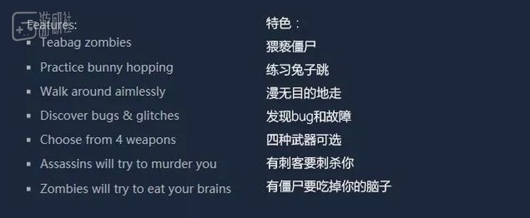 在有限的广场活动范围内,除了僵尸之外还有连贴图都没有的建筑物,不过这也许是游戏说明上讲的需要“探索”的故障之一。只是不管你如何探索,游戏的所有内容也就几乎到此为止了。