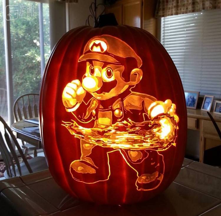 马里奥作为世界范围内都家喻户晓的角色,南瓜灯上肯定也少不了它的身影。