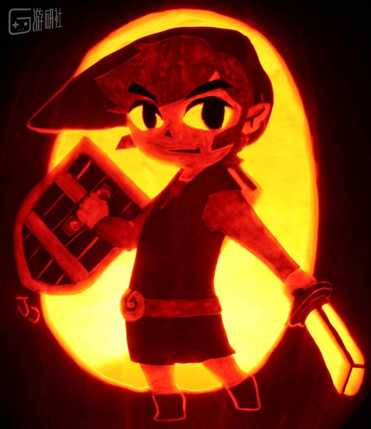 在各种游戏题材的南瓜灯中,塞尔达系列显然就是颇具人气的一个分支。主角林克自然就成了许多爱好者雕刻南瓜灯的首选题材。