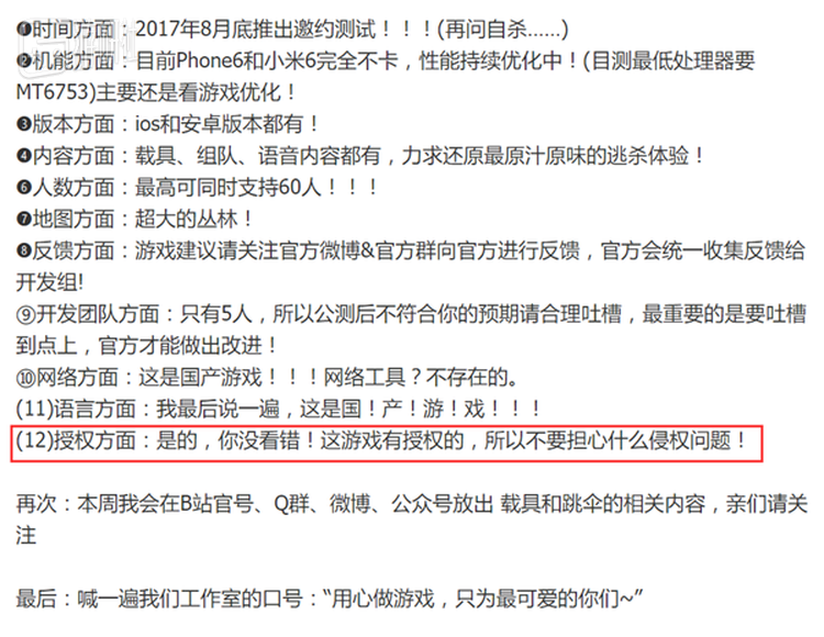 同时,官方公告不止一次地声明,这是一款“有授权的游戏”,所以“不要担心什么侵权问题”。