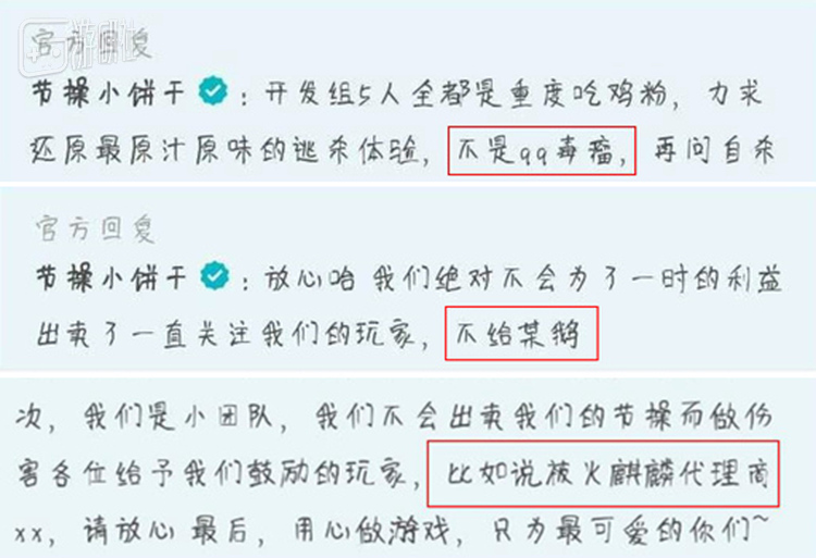 在3个月前,官方做此声明的动机是可以理解的,当时《光荣使命》的开发团队,是一个情怀满满的5人小团队,是“资深吃鸡粉”,是“不为盈利,只为最可爱的人们”的理想开发者,这样独立气息充沛,富有情怀的团队,有着完美的“人设”,怎么能跟老被人吐槽的腾讯“同流合污”呢,当然要划清界限。