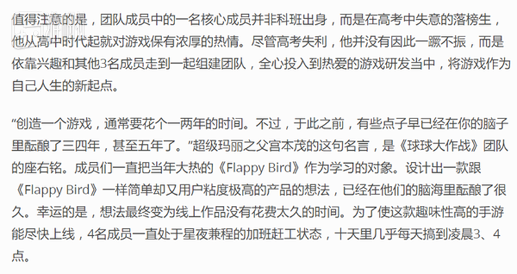 摘自《高考落榜生十天开发出百万在线手游明星大咖上瘾》