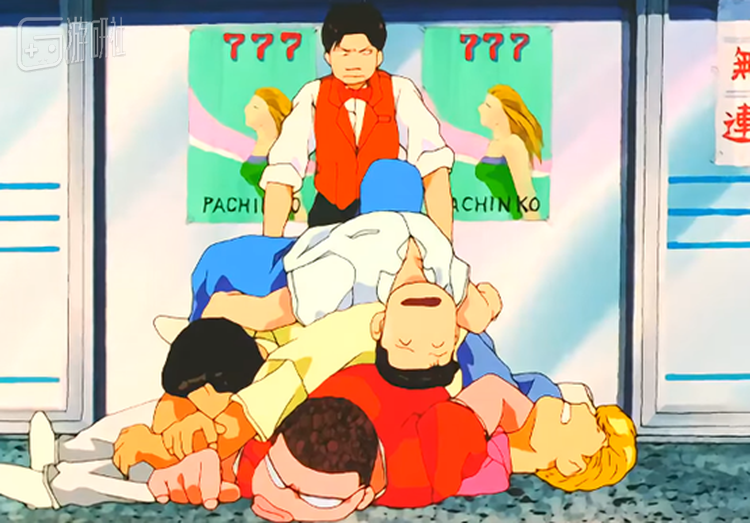 一代名作《臭作》的开篇,本该赴任的宿舍管理员因为柏青哥连续中奖舍不得离开,给了臭作冒名顶替的机会。图中满溢的钢珠代表了他难得的好运。