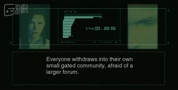 尽管距离2001年的MGS2发售已经过去了16年,但这段对话如今看来依旧非常有意义——它仿佛预言一般阐明了当今社会的诸多现实问题。