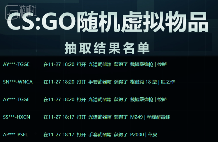 9月11日,国服CS:GO也在其官方网站上公开了其武器箱的开箱结果概率,并且专门设置了开箱结果页面,玩家在游戏里开出的物品都会在这里进行公示(特别是一些获得罕见级别物品的玩家名单):