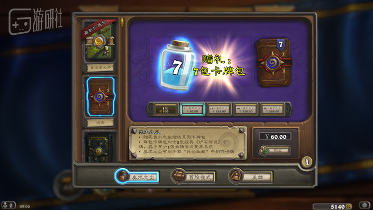 比如国服炉石传说,就将直接购买卡包的方式改为“购买奥术之尘时,获赠相应数量的卡包”:
