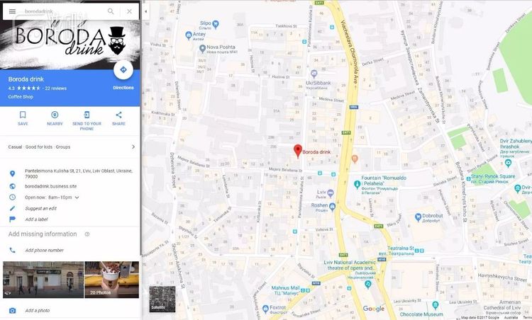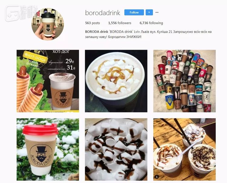 多亏了强大的搜索引擎,Janerka幸运地在Instagram上找到了另一家叫做“BorodaDrink”的咖啡厅——这似乎才是咖啡厅的本体:地点确实在乌克兰,分享的照片是各种各样的咖啡和甜点,文字与介绍用的也是纯正的乌克兰语,更关键的是,里面没有一张图片和游戏主题有关!显然,这只是一家最普通的咖啡厅,根本没有什么游戏主题。