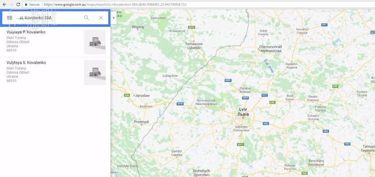 随后,Janerka把收到的第一封邮件里注明的咖啡厅地址在谷歌地图上搜索了一下,对不起,这个地址确实在乌克兰境内,但是这里并不是繁华的市中心,而是荒无人烟的郊外。