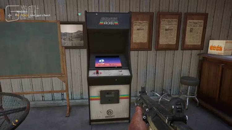 某酒吧角落里有一台《孤岛惊魂》街机,然而屏幕显示的似乎是FC《联合大作战》